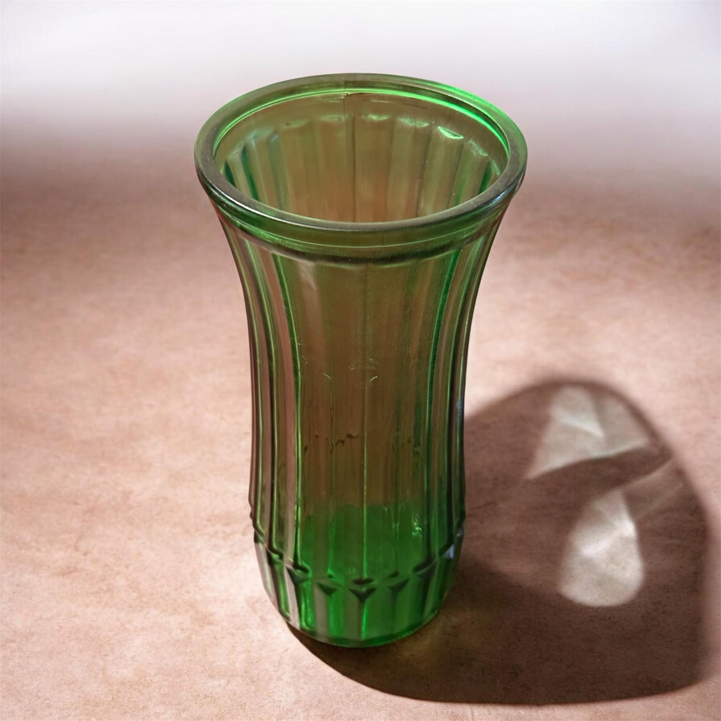 Emerald Ribbed Glass Vase