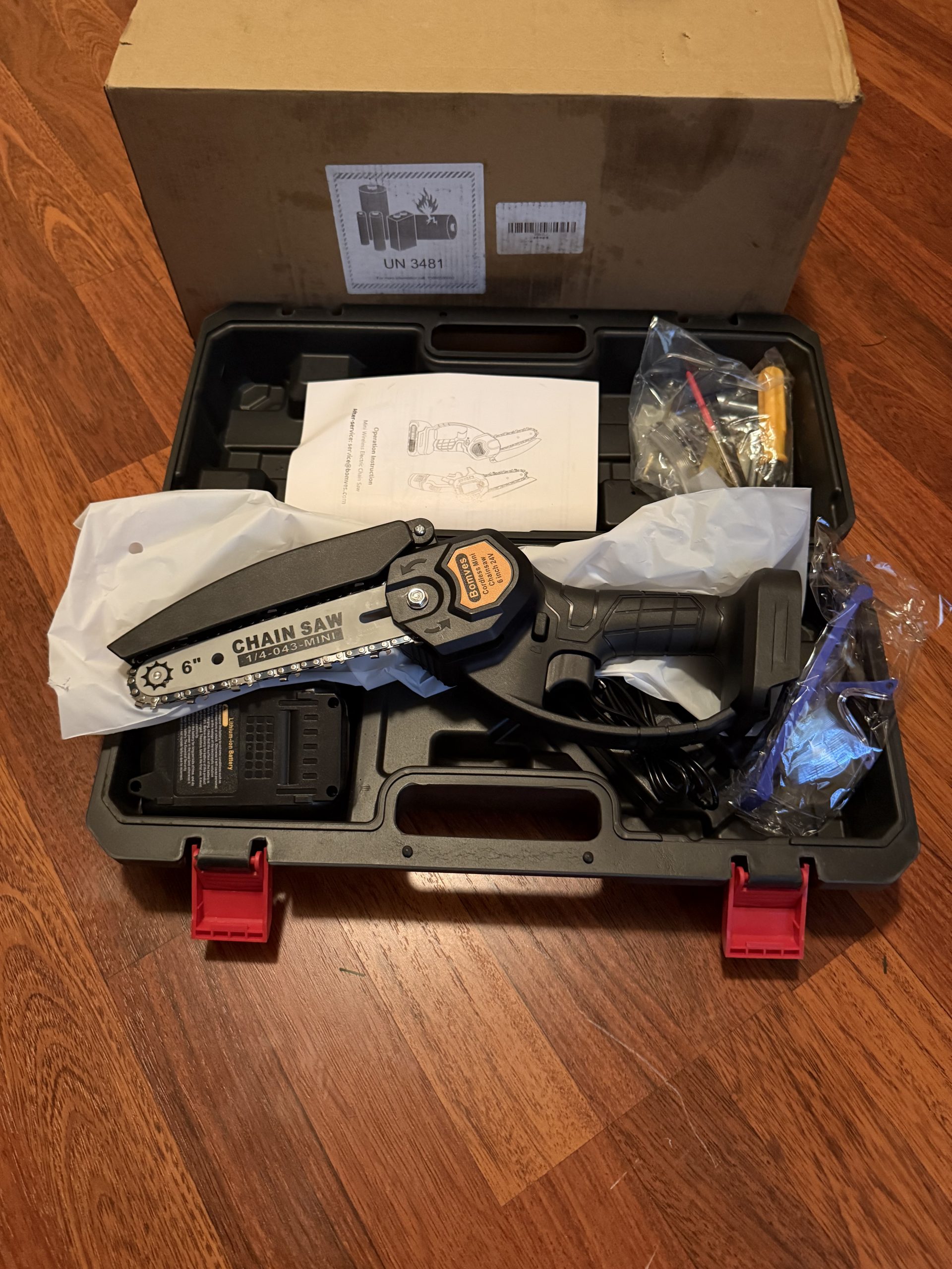 • 1 x Bomves 6″ Cordless Mini Chainsaw